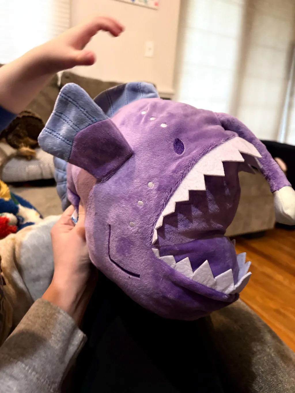 Introducing the one, the only, the AquaGlows Black Seadevil Anglerfish plush! Kids all over the world are familiar with the anglerfish, an awesome denizen of the deep sea. The glow-in-the-dark "fishing pole" on top of its head, which baits smaller fish to their doom, is simply legendary.