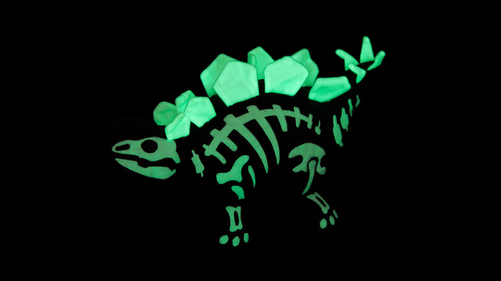 Flip them inside out! These stuffed animals aren't just adorable, they're also reversible and their fossils glow in the dark. Each DinoGlow dinosaur has a super-soft fossil that glows in the dark, making the transition from daytime adventures to nighttime cuddles as easy as a flip of fabric.